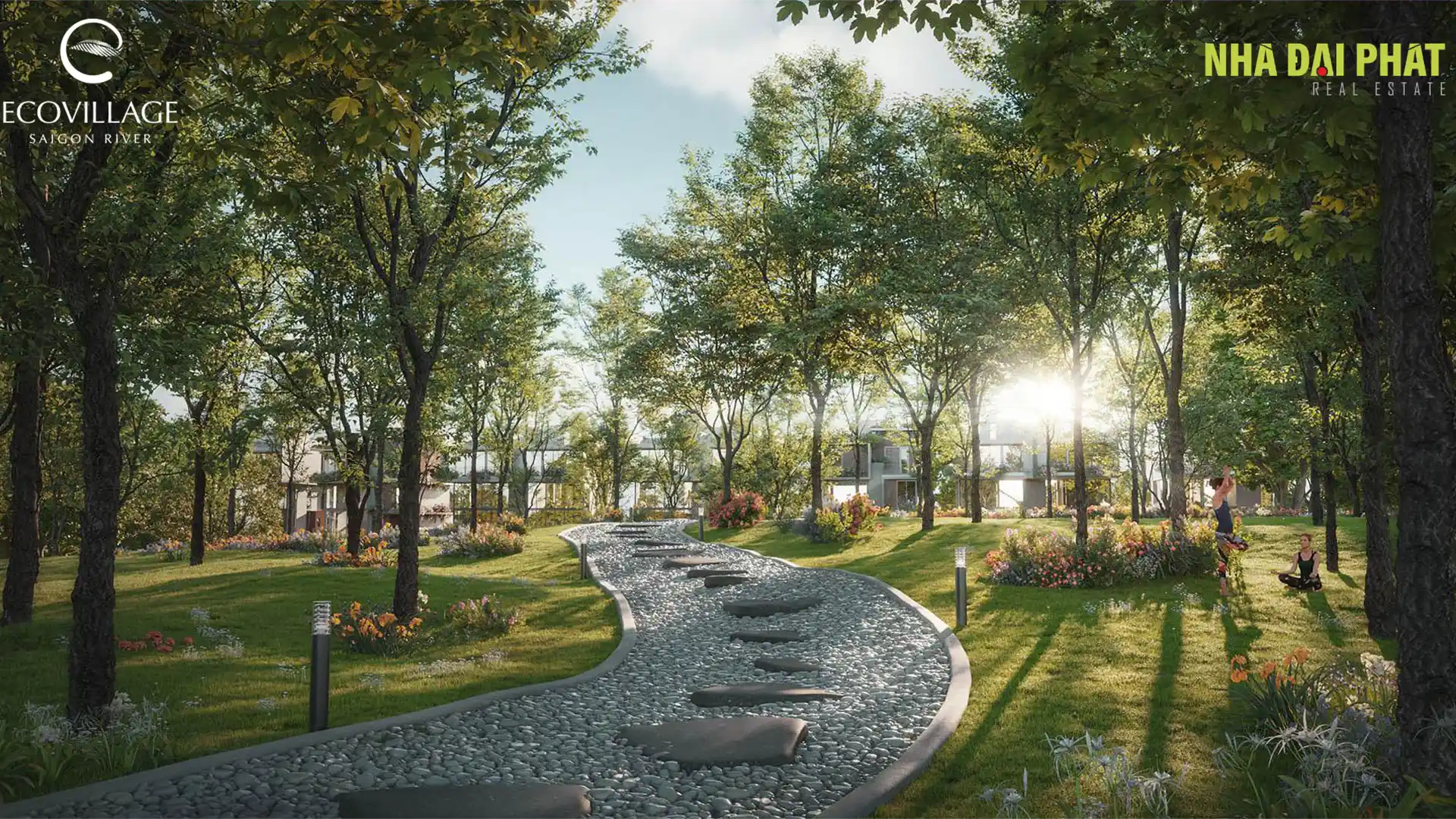 EcoVillage Saigon River là một một tuyệt tác kiến trúc được thể hiện bởi LJ Group. EcoVillage Saigon River có tổng diện tích 55ha, nhưng có đến 32ha diện tích mặt nước đi qua dự án, mật độ xây dựng toàn khu chỉ 15%, diện tích cây xanh – mặt nước chiếm 30%, dành tới 4ha đất cho công viên và lượng cây xanh tương đương 170 cây/người. Đây là những con số vô cùng ấn tượng mà chưa có dự án tại Việt Nam đạt được và thậm chí là vượt qua cả Ecopark Hưng Yên, dự án đã từng rất thành công của Nhà sáng lập Ecopark với giải thưởng khu đô thị có thiết kế cảnh quan tốt nhất thế giới.